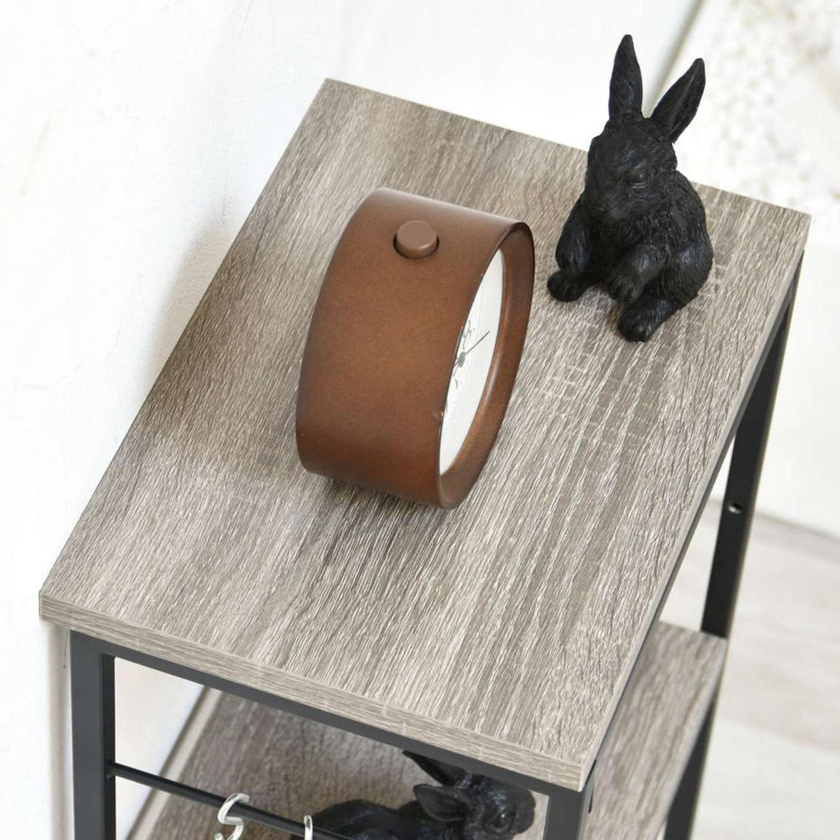 コンソールテーブル 幅30cm 2段 フック付き スリムラック Calm ( ラック 収納棚 飾り棚 玄関 廊下 木目調 奥行21cm 収納 小物 オープンシェルフ スリム 薄型 )