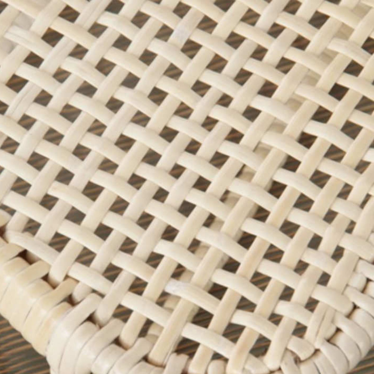 自然な風合いや素材の温かみを味わっていただけるように、材料に皮付きの籐をそのまま使用しています。そのため、材料1本1本の色の違いや、黒ずみ、斑点の部分がございます。また、籐の表面のところどころに傷のようにホーロー質がはがれた部分があります。これはトゲのある「節」を取り除いた削り跡です。これらは不良ではなく、天然素材特有の風合いによるものです。