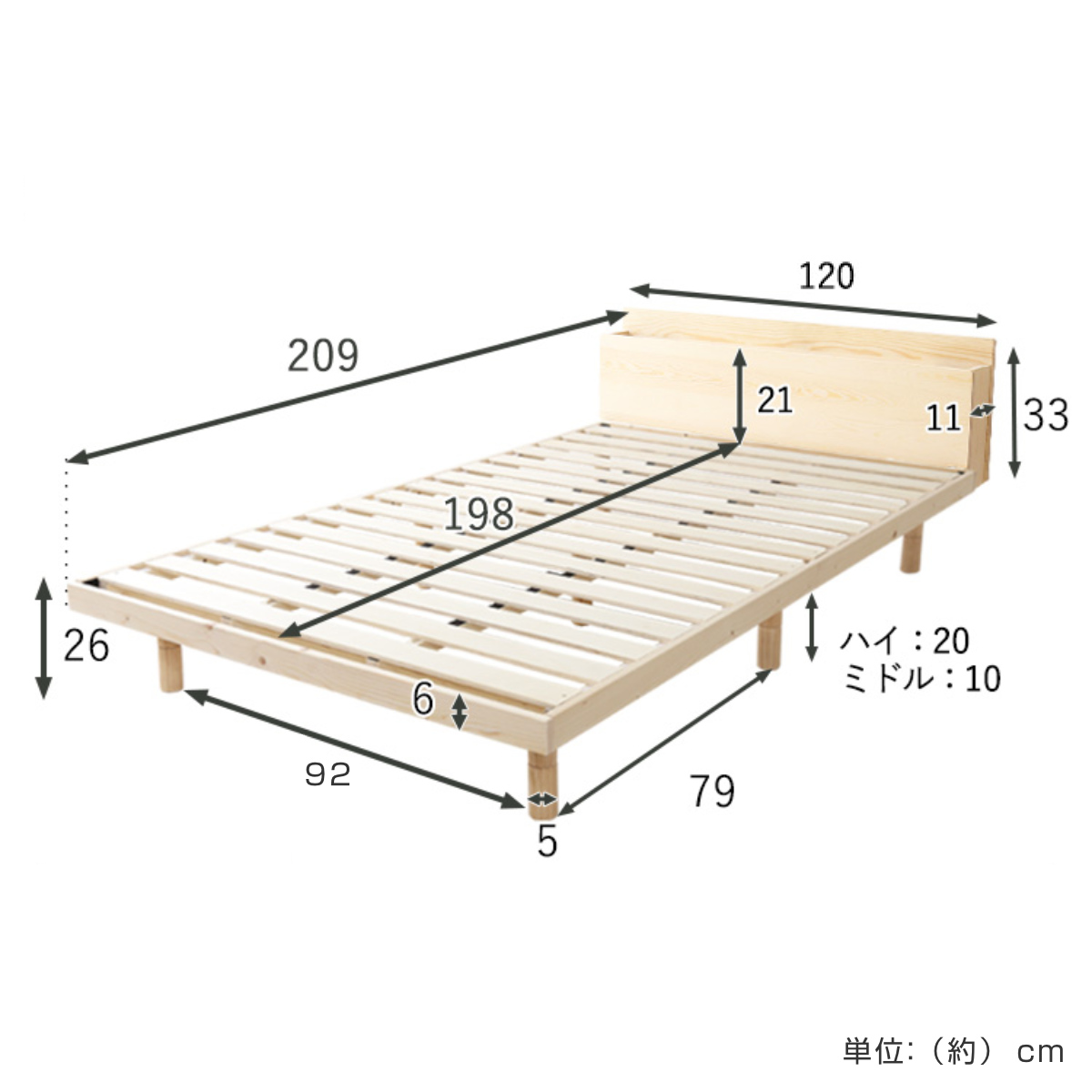 | サイズ | 約 幅120×奥行209×高さ53(cm) ミドル:約 高さ43cm ロー:約 高さ33cm |