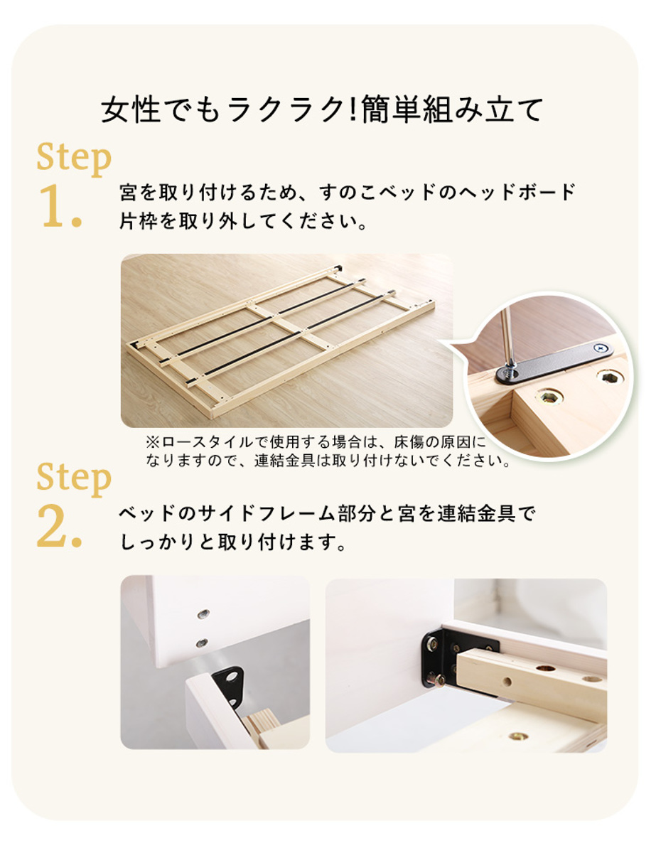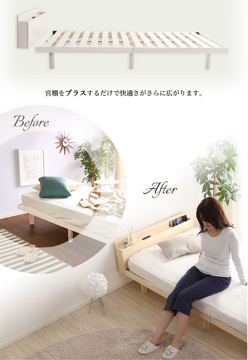 | 注意事項 | ※天然木を使用しているため、1点1点色合いや風合いが異なります ※ベッド本体は別売りです ※商品ページ内には別の商品を含む画像を使用しています |