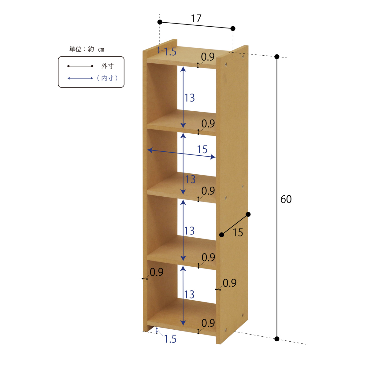 オープンラック 幅17cm 4段 日本製 スリム 収納棚 ラック ( 棚 卓上 ディスプレイ 飾り棚 シェルフ )