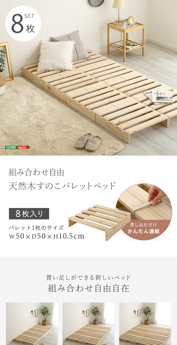 パレットベッド シングル 8枚入り 幅100cm すのこ 天然木 ( フロアベッド ロータイプ 連結 パレット ベッド )