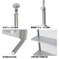 | 天井でしっかり固定 付属のスパナを使ってナットを閉めることで、しっかりと固定できます。 | 無段階でスムーズに調節 回しやすい大きめのノブで様々な高さに対応できる無段階調整。 ※高さ202〜260cmに設置可能 |