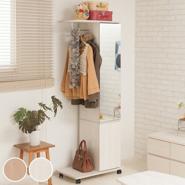 お洋服や小物、バッグなどをまとめて収納できるため、ミラーを見ながらのコーディネイトがしやすく便利です。なにかと場所をとるハンガーラックとミラーがひとつになっているオールマイティな衣類収納なので、1人暮らしの方にも最適です。