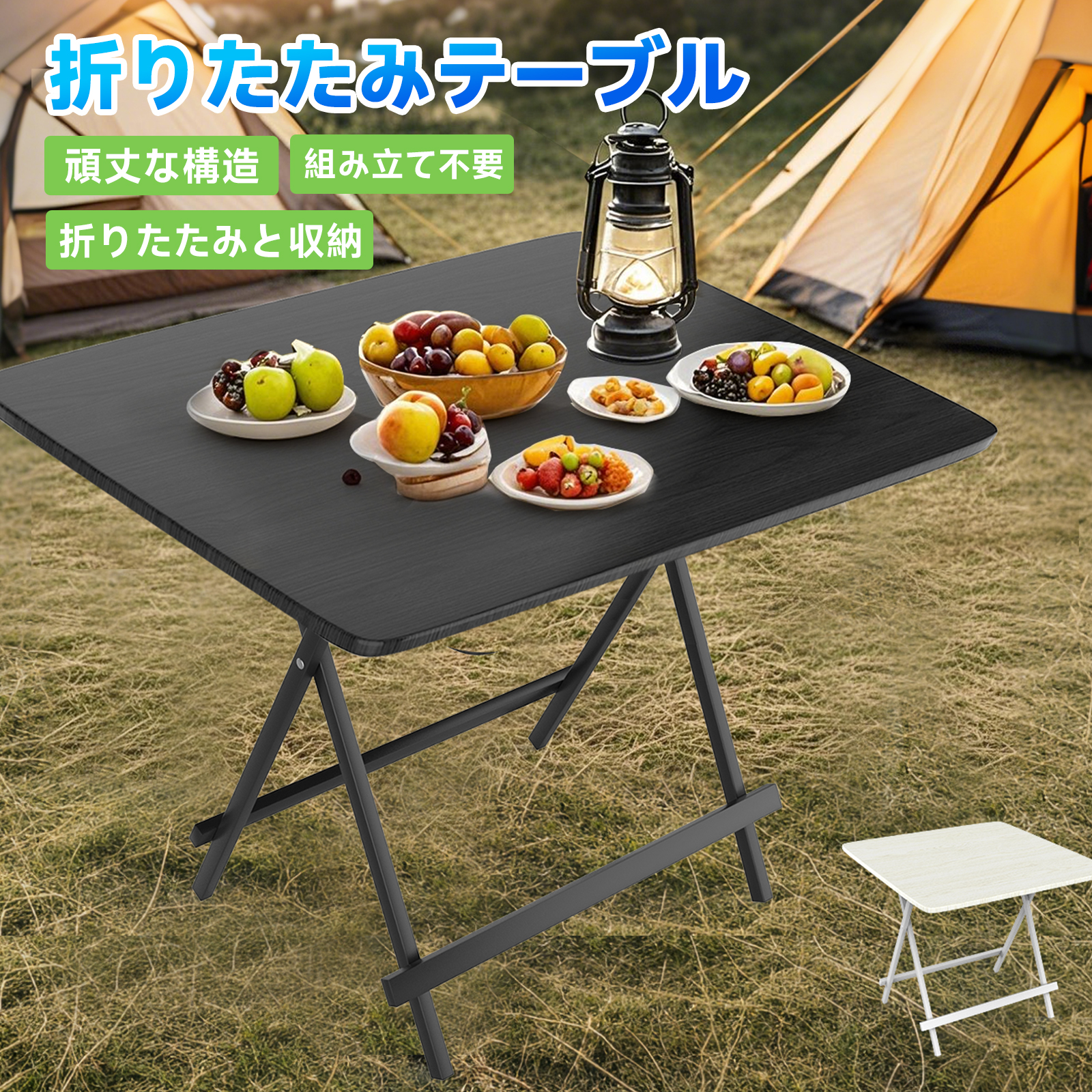 折りたたみ テーブル コンパクト テーブル アウトドア テーブル 幅80cmx奥行80cmx高さ74cm 木目調 合板 組み立て不要 4人用 食卓 作業台 lx-od023