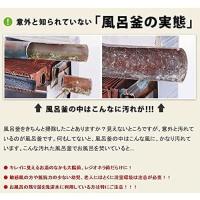 追い焚きのできるすべての釜に適応(1つ穴でもOK) お風呂がはやくわき、ガス代が節約できます!湯アカ、水アカ、湯ドロをイオンパワーできれいに落とす!・洗剤を残り湯に入れて溶かし、浴槽備品なども入れて一晩おくだけで風呂釜内の湯ドロ、浴槽、浴室備品、タイル、タイルの目地、水洗金具、等の汚れ、ヌメリ、水アカを化学的に分解し落とし去ります。・お風呂が早く沸きガス代の節約になります。・どなたでも風呂釜洗浄、浴槽内外のお掃除が手軽にできます。・アルミ、ステンレス、ホーロー、プラスチック、タイル、ゴムなどを痛めにくく安心してお使いいただけます。・純石鹸成分を使用、合成の界面活性剤は使用していません。◎品名:浴槽、風呂釜洗浄剤◎正味料:300g×2包◎成分:炭酸塩・珪酸塩・脂肪酸カリウム(純石けん分)◎液性:アルカリ性◎用途:風呂釜の洗浄(バランス釜・追い炊きのできる釜)タイル、タイルの目地、浴槽、浴槽備品(洗面器・腰掛けなど)水洗金具などの洗浄