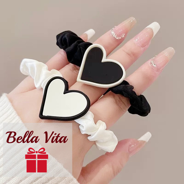 ハートのモチーフがキュートなシュシュヘアゴム。