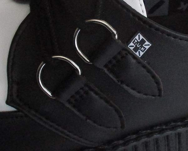 靴紐を通す金具は大きめのDリングを採用、その横に配置されたTUKブランドロゴがさりげなくおしゃれです。