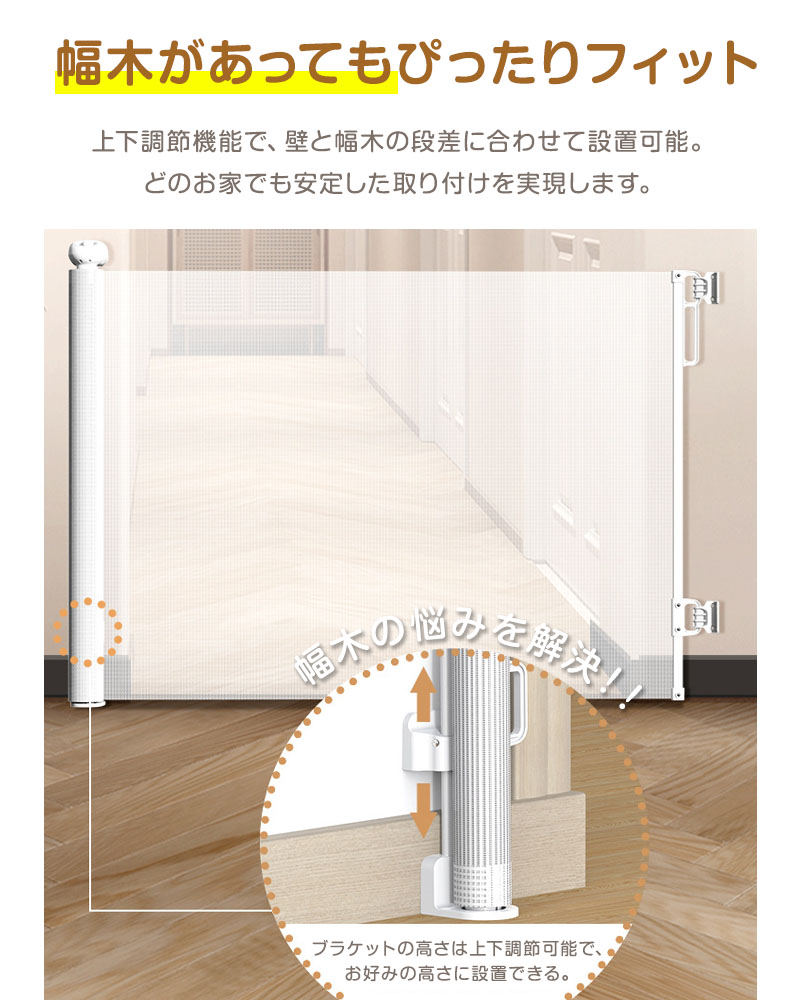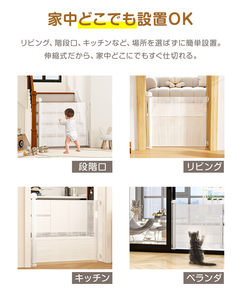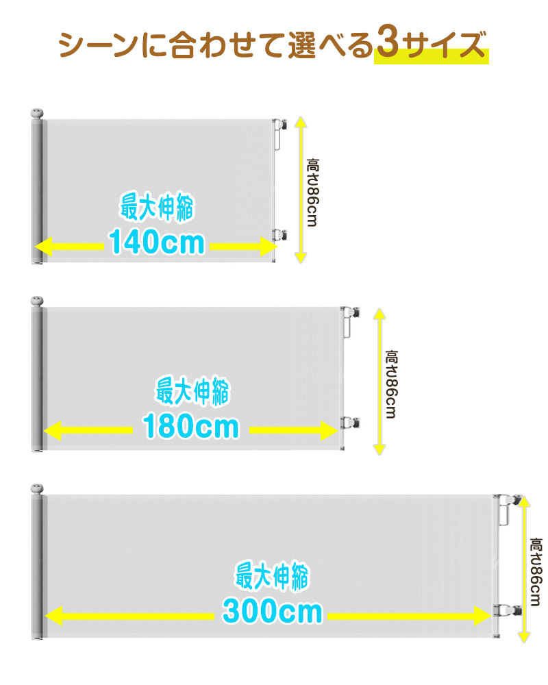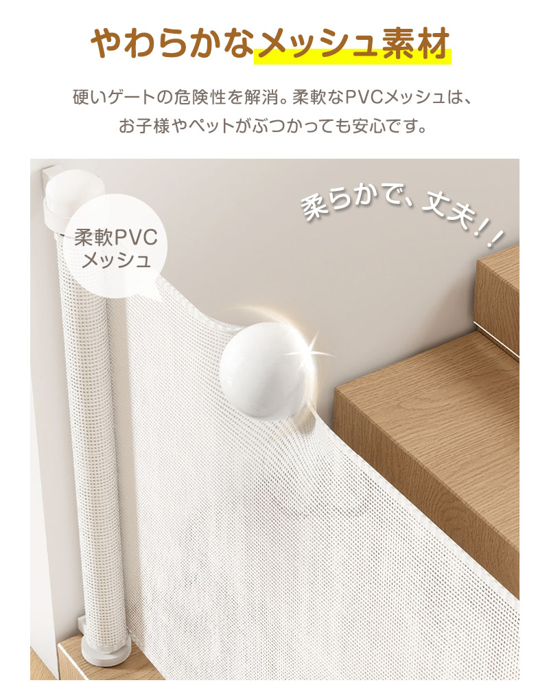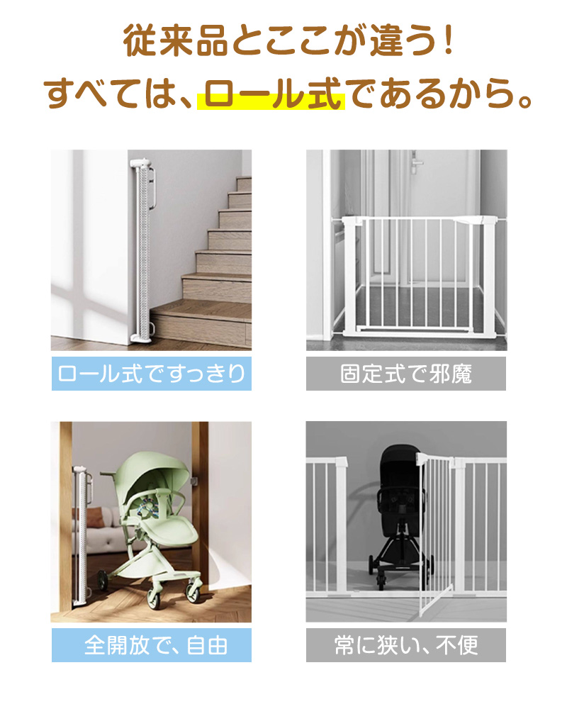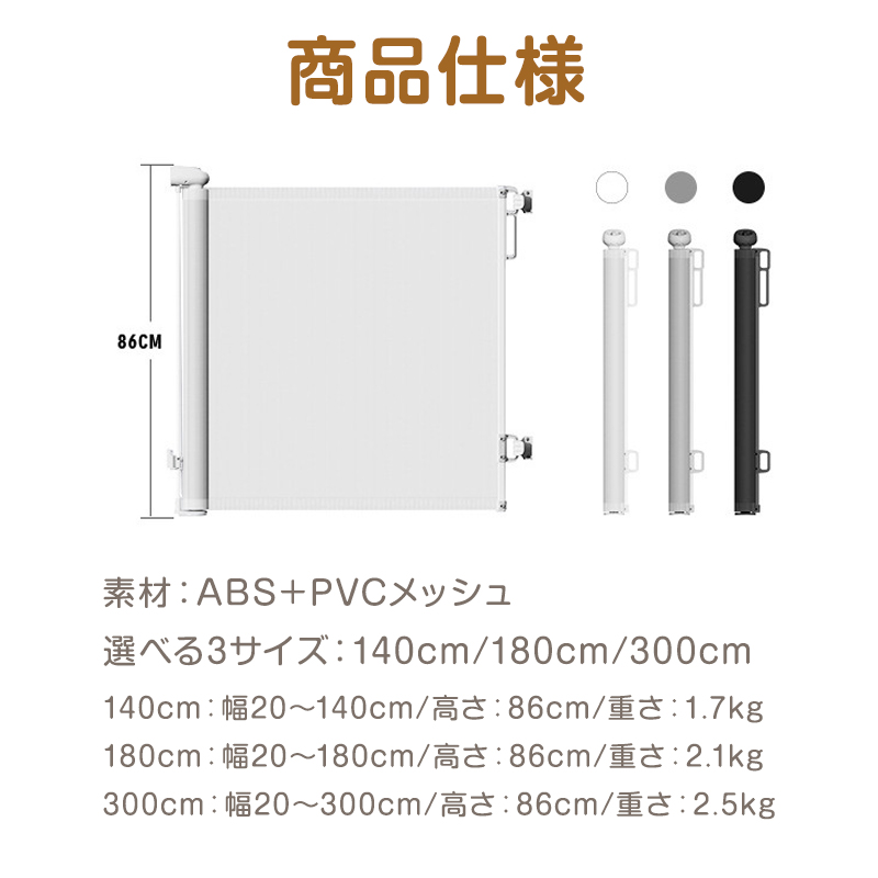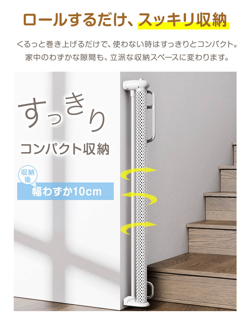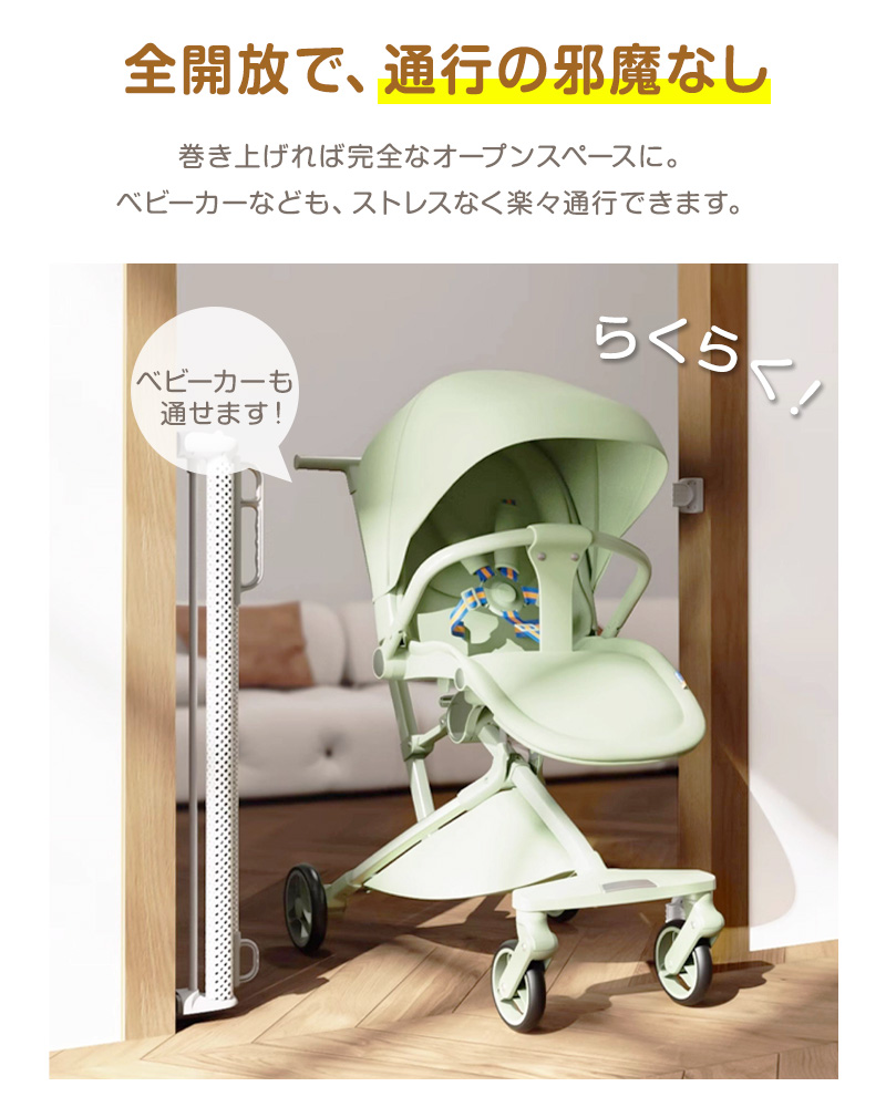 【クーポンで30%OFF】 ベビーゲート ロール式 階段上 伸縮 最大300cm 階段口 玄関 キッチン 巻き取り式 犬 猫 子供用 セーフティゲート 壁保護 穴あけ不要