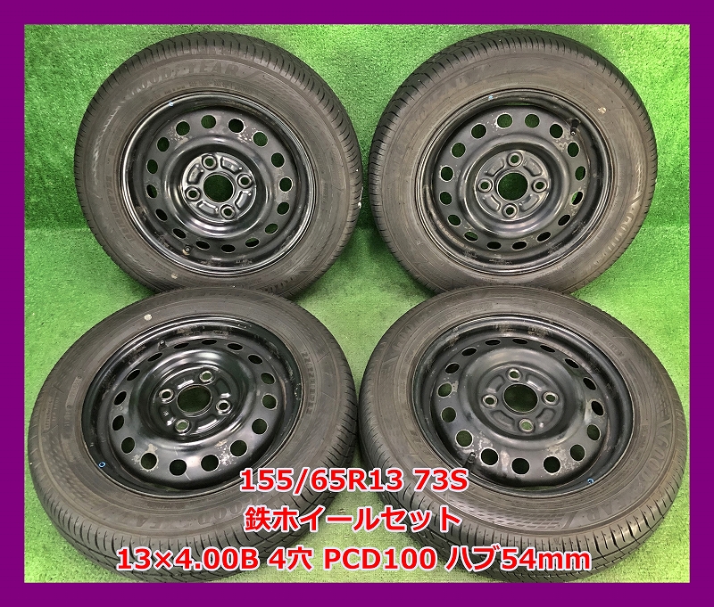 2022年製 155/65R13 73S GOOD YEAR Efficient Grip ECO EG02 中古 夏タイヤ/中古 鉄ホイール付 4本 4穴 PCD:100 ハブ54mm
