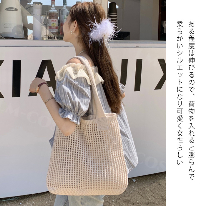 カゴバッグ レディース バック 2way 大きめ 肩掛けバッグ 草編みバッグ ストローバッグ メッシュバッグ 夏バッグ サマーバッグ 旅行バッグ エコ