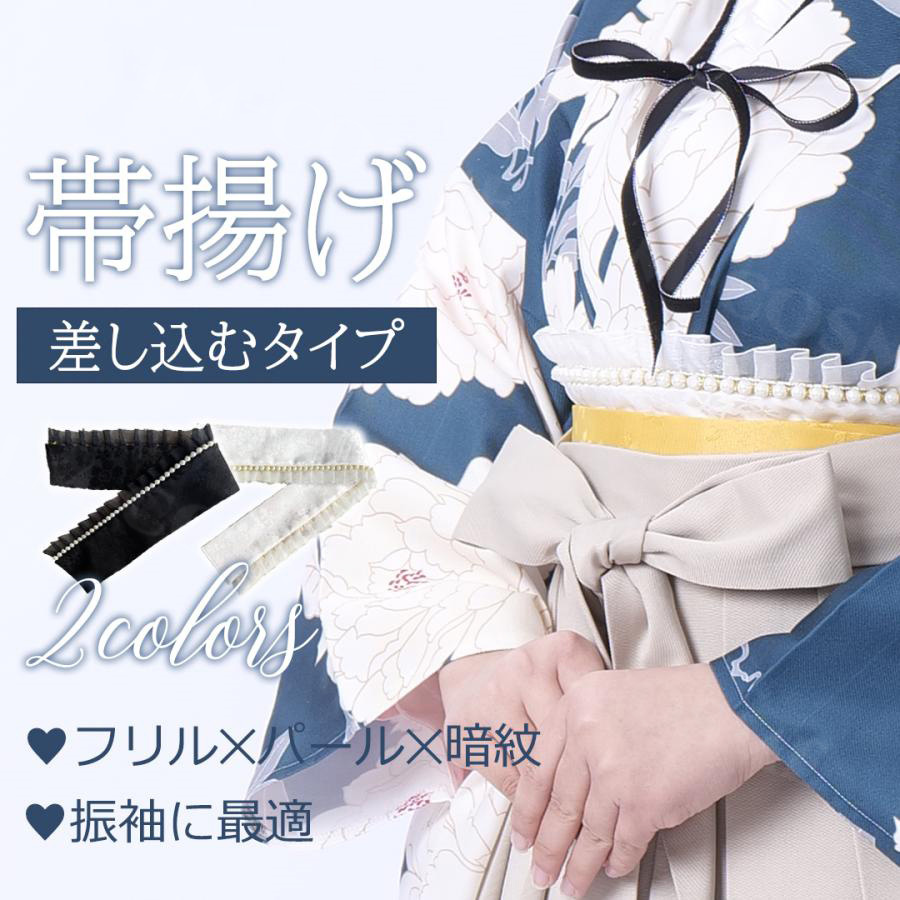 帯揚げ 和洋折衷 暗紋 和装小物 振袖 フリル パール 白 黒 ホワイト ブラック おしゃれ 大人 レディース 卒業式 成人式 浴衣