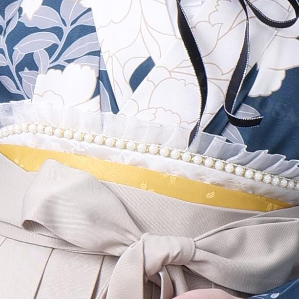 ディテールへのこだわり: フリルとパールの装飾が、華やかさと上品さをプラス。