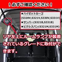 | 車種名 | ダイハツ ハイゼットカーゴ ( S320V S321V S330V S331V ) スバル サンバーバン ( S321B S331B ) トヨタ ピクシスバン ( S321M S331M ) ※DXやビジネスパック等のようにリヤ左上にルームランプが装着されていることをご確認ください。 純正消費電力:フロント8w、リヤ8w 本商品消費電力:フロント1.1w、リヤ4.8w |