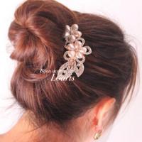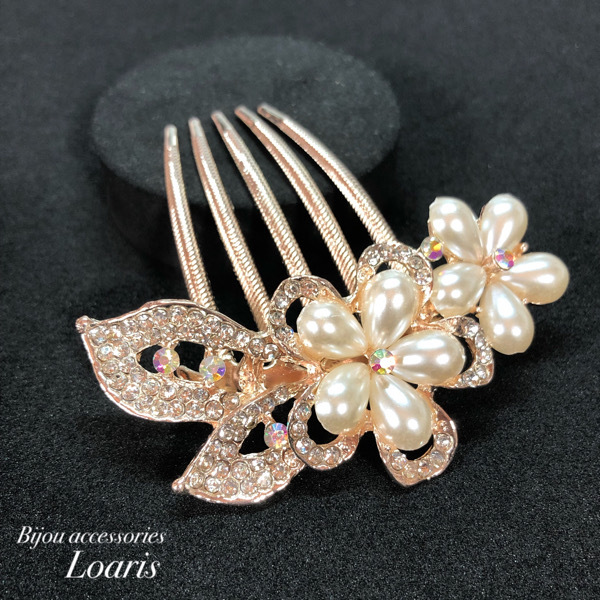 パールとラインストーンを1つ1つ丁寧に嵌め込んだヘアコーム。