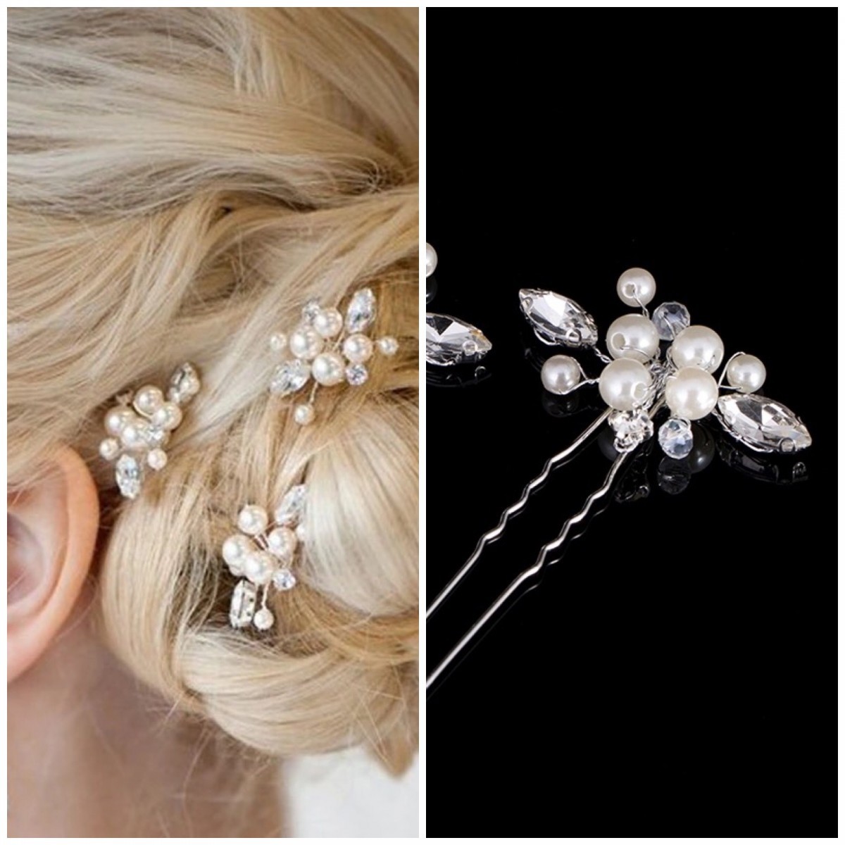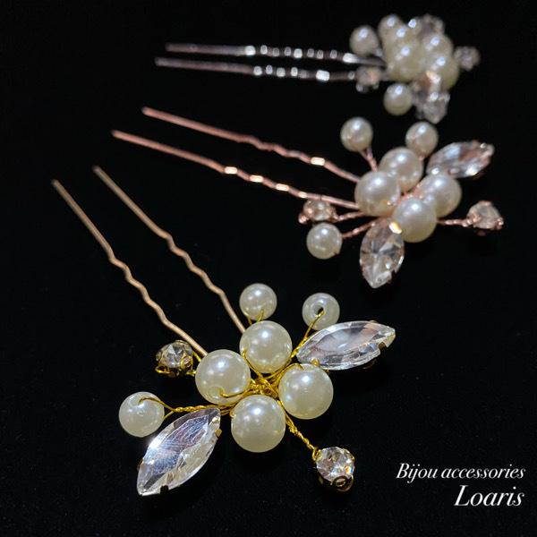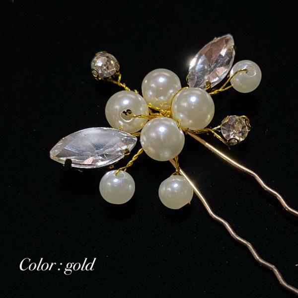 パールとラインストーンを丁寧に繋げたヘアピン