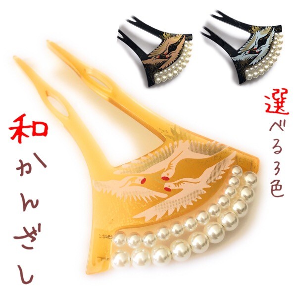 パール付きバチ型かんざし