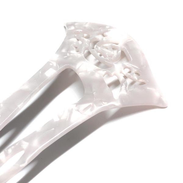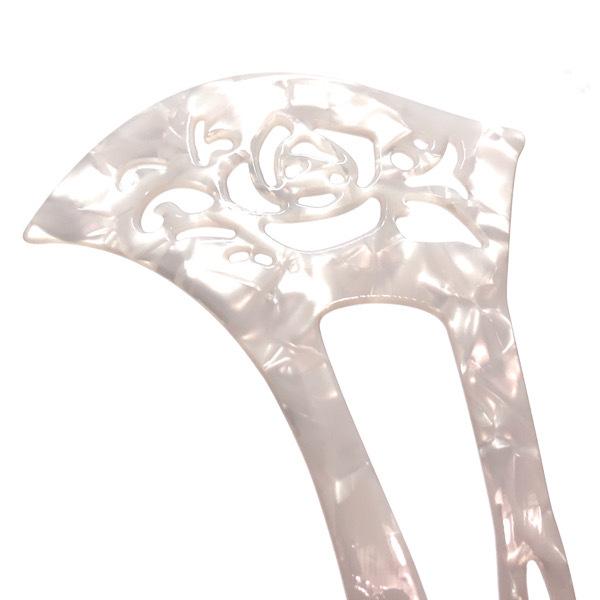 かんざし バチ型 白 髪飾り 和装髪飾り パール 花 フラワー 2本差し 挿し 着物 和装 浴衣 留袖 扇型 透かし