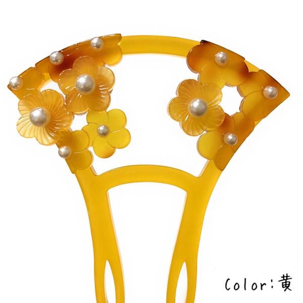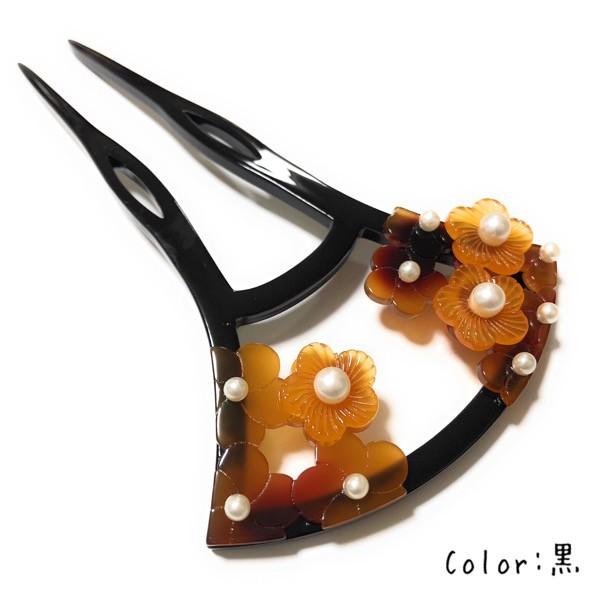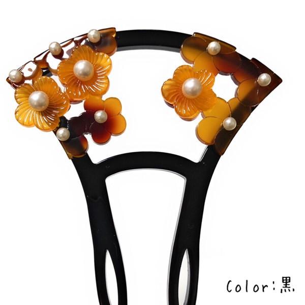 かんざし 髪飾り 鼈甲風 花 梅 和装髪飾り パール 2本挿し 透かし 扇 黒 黄