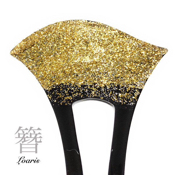 金粉風ラメを散りばめたバチ型かんざし