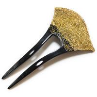 バチ型 かんざし 髪飾り 金粉風 ラメ2 本挿し 和装 しっとり 留袖 着物