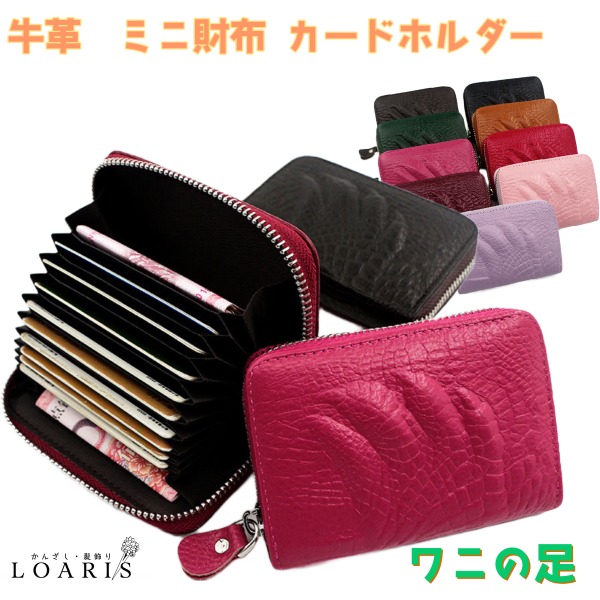 カードホルダー ミニ財布 本革 シンプル 無地 大容量 ワニ じゃばら 小銭入れ