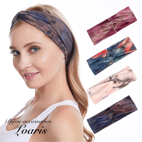 ターバン 幅広 アジアン ヘアバンド エスニック クロスターバン 染 タイダイ ヨガ マーブル アフリカ インド