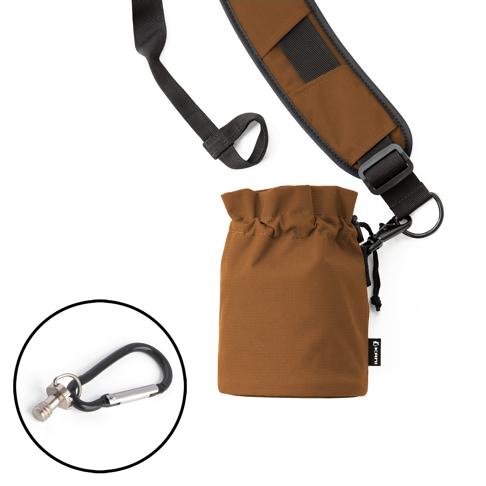 KANI 三脚ポシェット オレンジ + カラビナ式エンドフック / 簡易型三脚ケース 三脚ストラップ ショルダーベルト長さ調節可能 各種三脚対応
