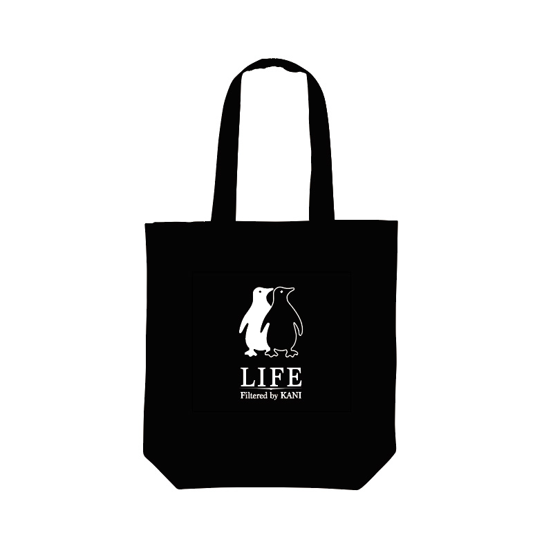 KANIのチャレンジ精神を象徴するファーストペンギンをあしらった薄手のトートバッグ。
