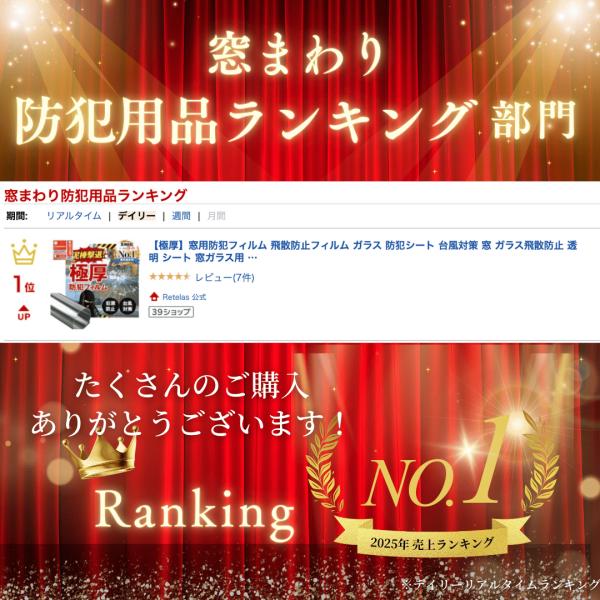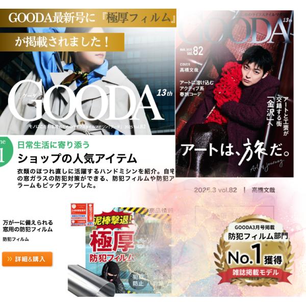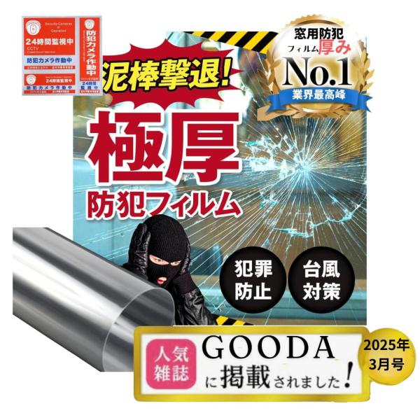 窓用防犯フィルム【極厚】\GOODA3月号掲載/紫外線カット 飛散防止フィルム ガラス 防犯シート 台風対策 窓ガラス用 ガラス破り対策 防犯フィルム 150cm×100cm