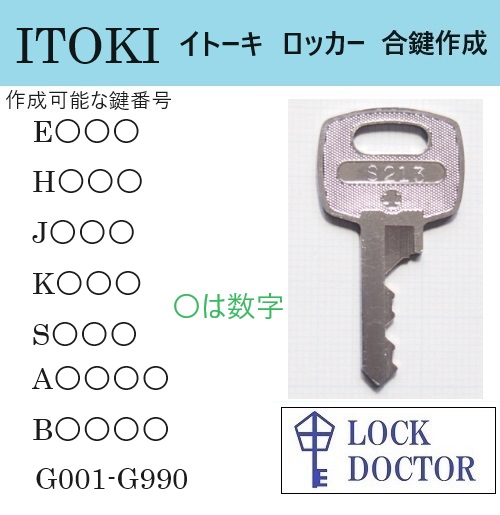 ITOKI(イトーキ)ロッカー 合鍵 スペアキー 鍵番号打刻 E印 H印 J印 K印 S印 G印 A印 B印 カギ