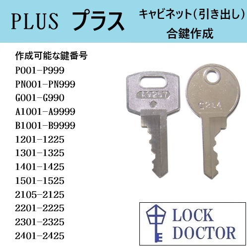 PLUS(プラス)キャビネット 合鍵 スペアキー 鍵番号打刻 P印 PN印 G印 A印 B印 数字4桁 カギ