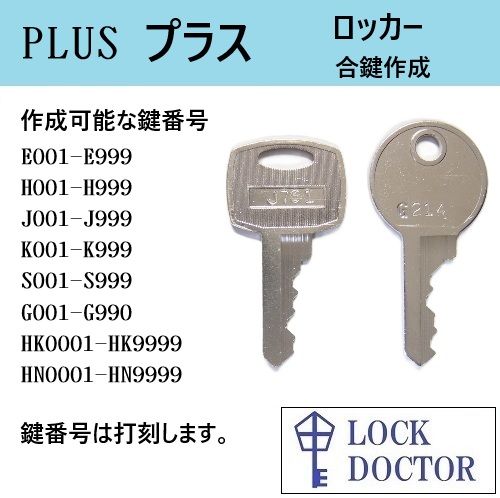 PLUS(プラス)ロッカー 合鍵 スペアキー 鍵番号打刻 E印 H印 J印 K印 S印 HK印 HN印 カギ