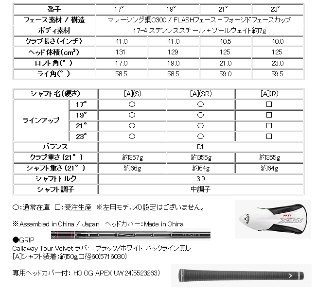 キャロウェイ APEX ユーティリティウッド UW(UT/FW) TENSEI 70 for Callawayカーボン ハドラス 23年モデル 日本仕様
