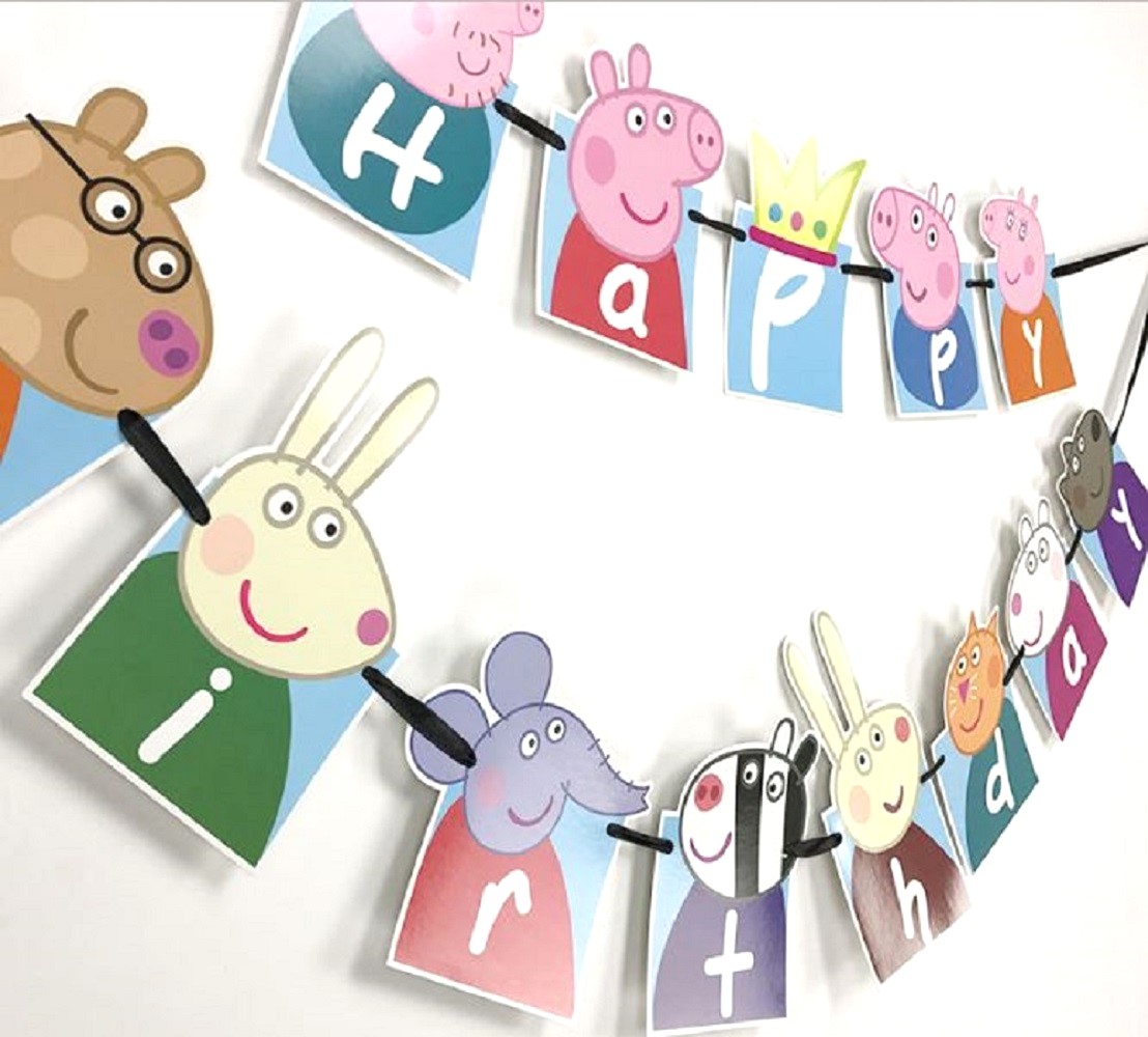 peppa 動物 旗 HappyBirthday ハッピーバースデー ガーランド 誕生日 飾り パーティ お祝い 幼稚園 記念撮影