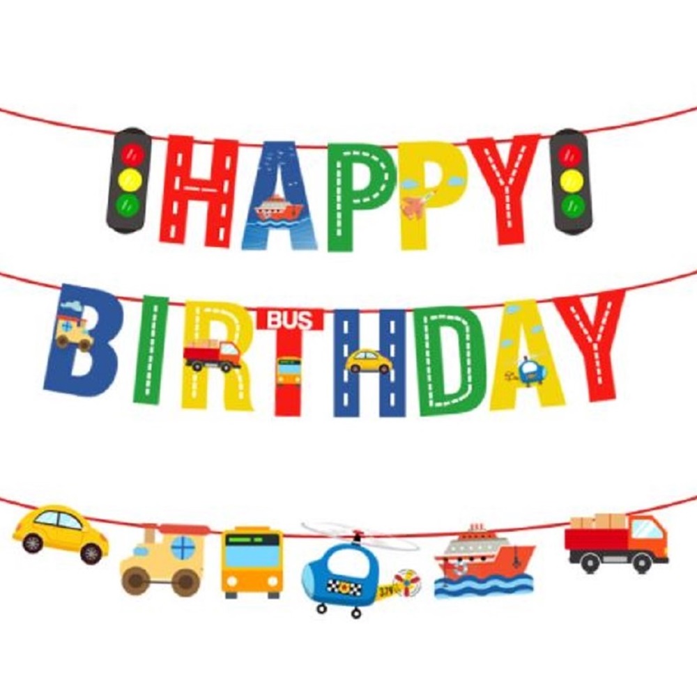 信号 乗り物 旗 HappyBirthday ハッピーバースデー ガーランド 誕生日 飾り パーティ 車 バス ヘリコプター 船 トラック 汽車 飛行機 信号機