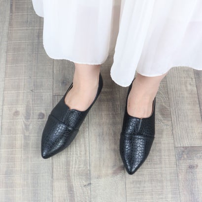 つま先に向かって細くなるポインテッドトゥが、ヒール無しでも「きちんと感」を演出。