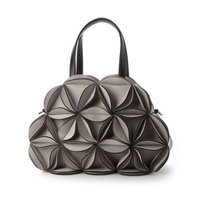 ミオオッジ MIOOGGI 柔らか素材 ネオプレン 3Dフラワーブーケ2WAYミニボストン (ライトグレー)