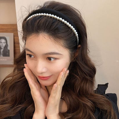 全体にあしらったパールが華やかな印象の2連カチューシャ。