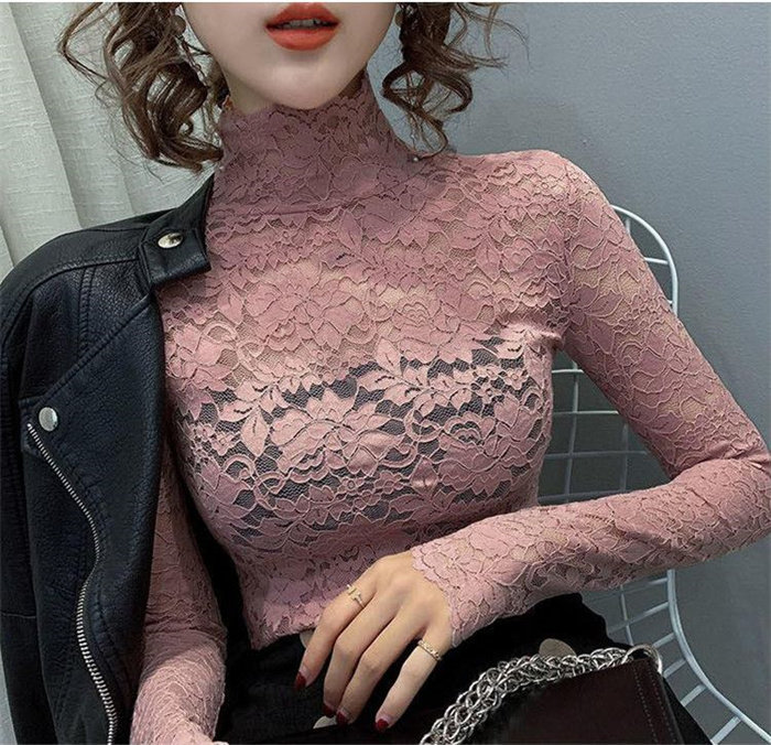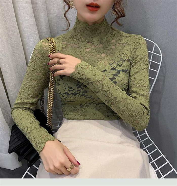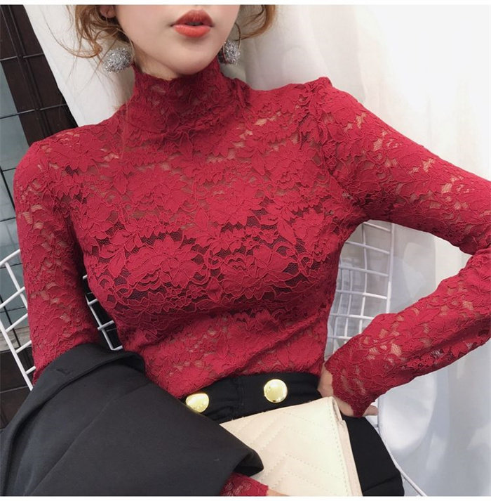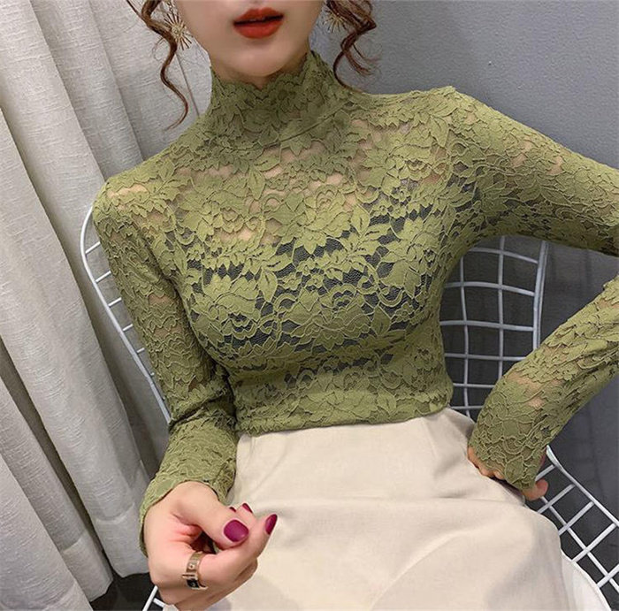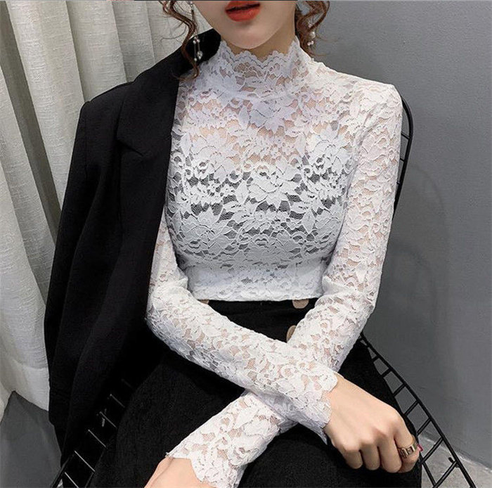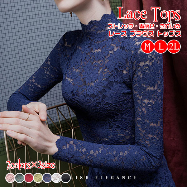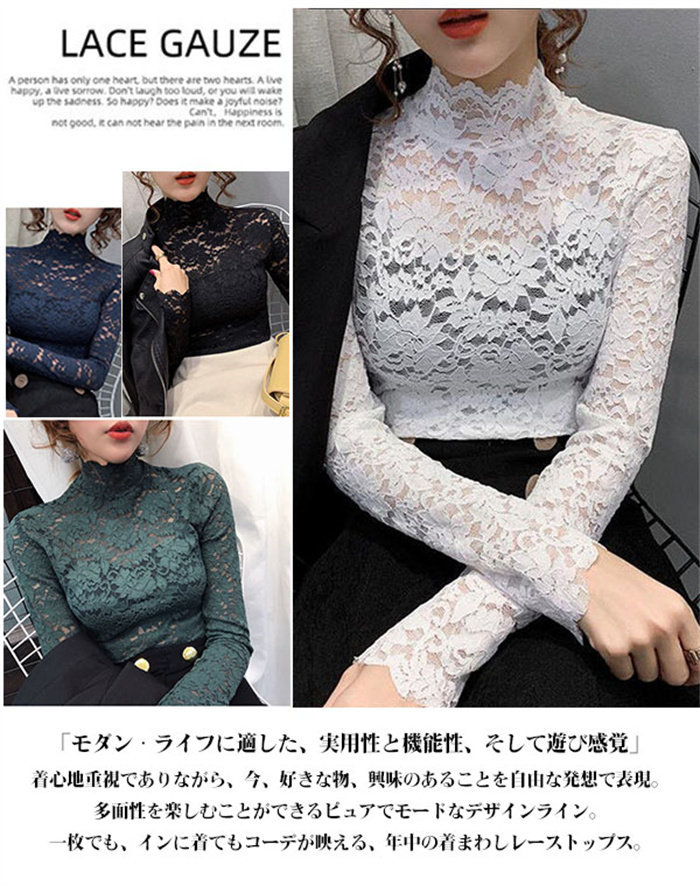 トップス レディース レース シャツ ブラウス レース チュール ハイネック レースインナー シースルー 長袖 トップス レースシャツ 着痩せ 送料無料