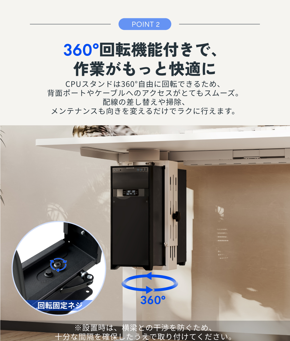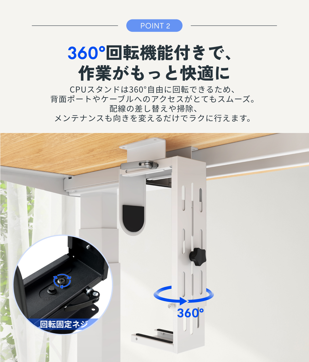 Flexispot CPU冷却ホルダー PCホルダー ラック 収納 オフィス 事務 ホルダー 机 置き PCスタンド 吊り下げ PC 台座 CPU ホルダー 360°回転可能 PCスタンド CH2