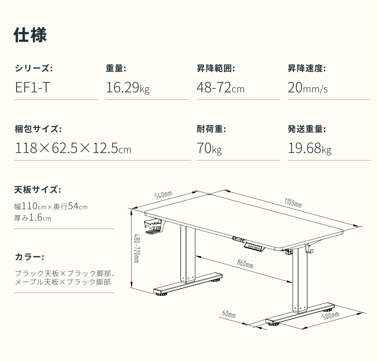 ・天板サイズ:幅110、奥行54cm、厚み1.6cm