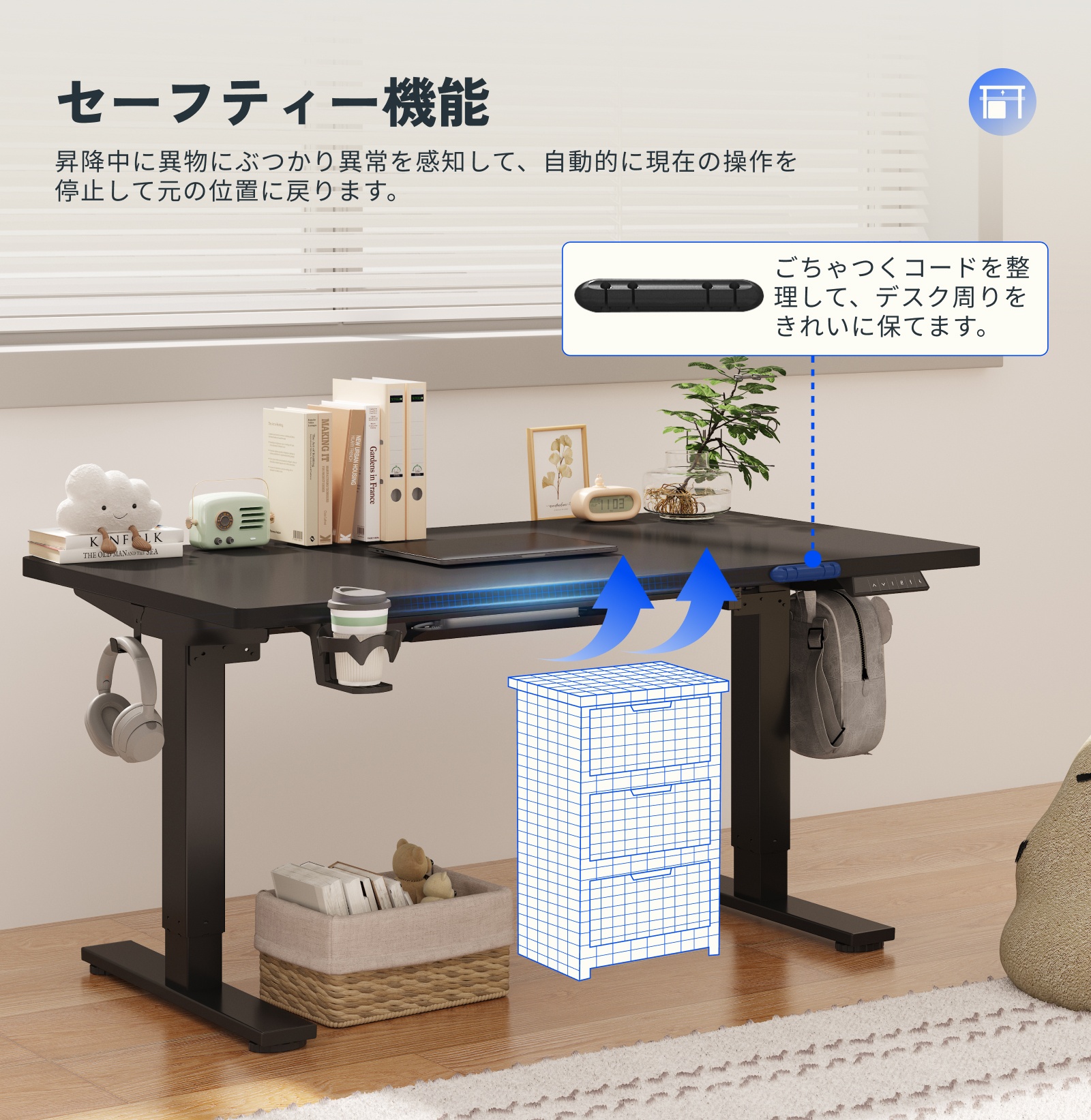 3、【静音モーター搭載、スムーズで静かな昇降動作】ボタンひとつで静かに高さ調整可能。早朝や夜間、家族がいる空間でも気兼ねなく使える静音設計です。