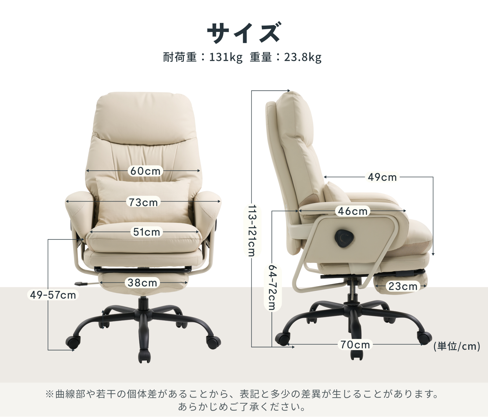・耐荷重:131kg