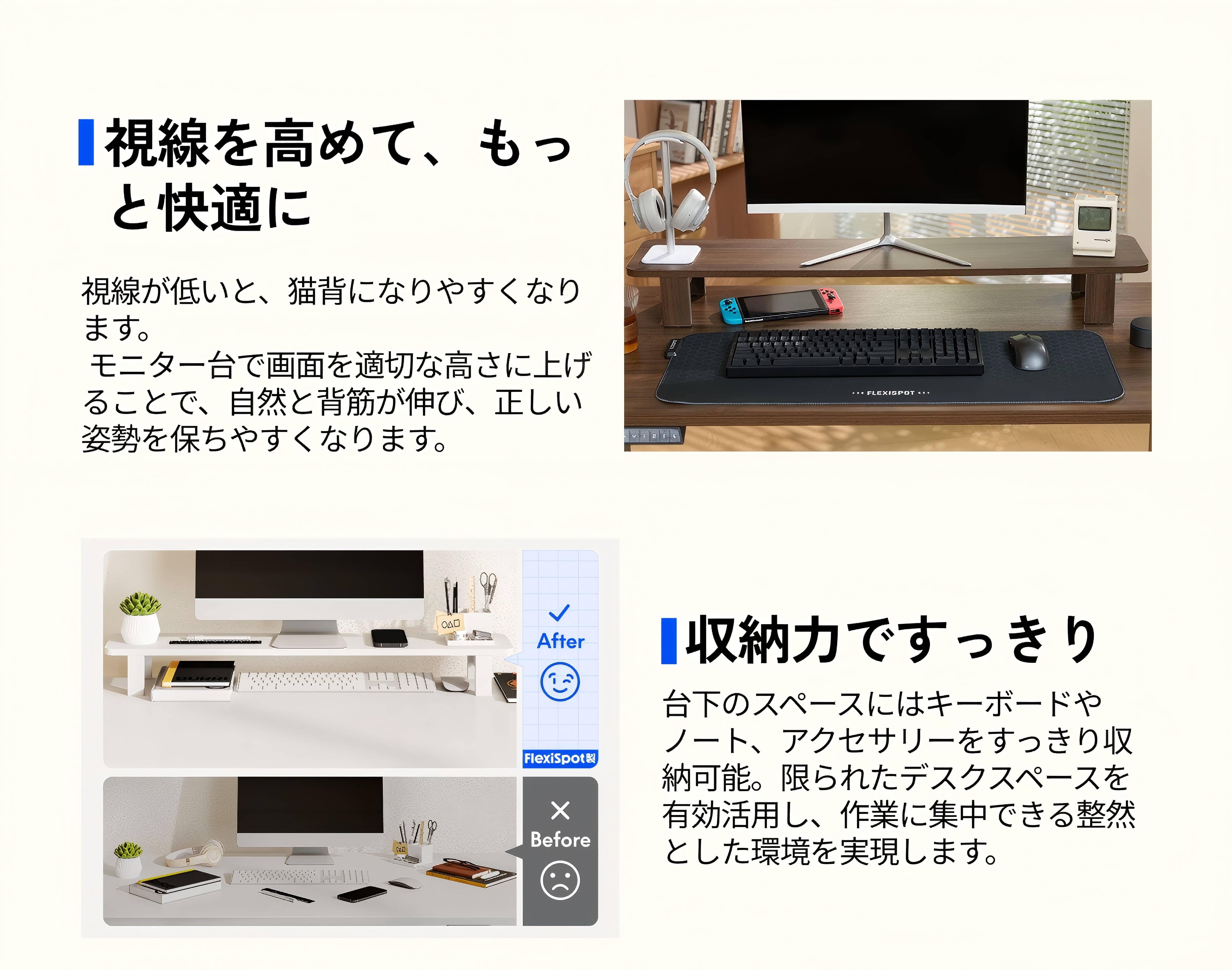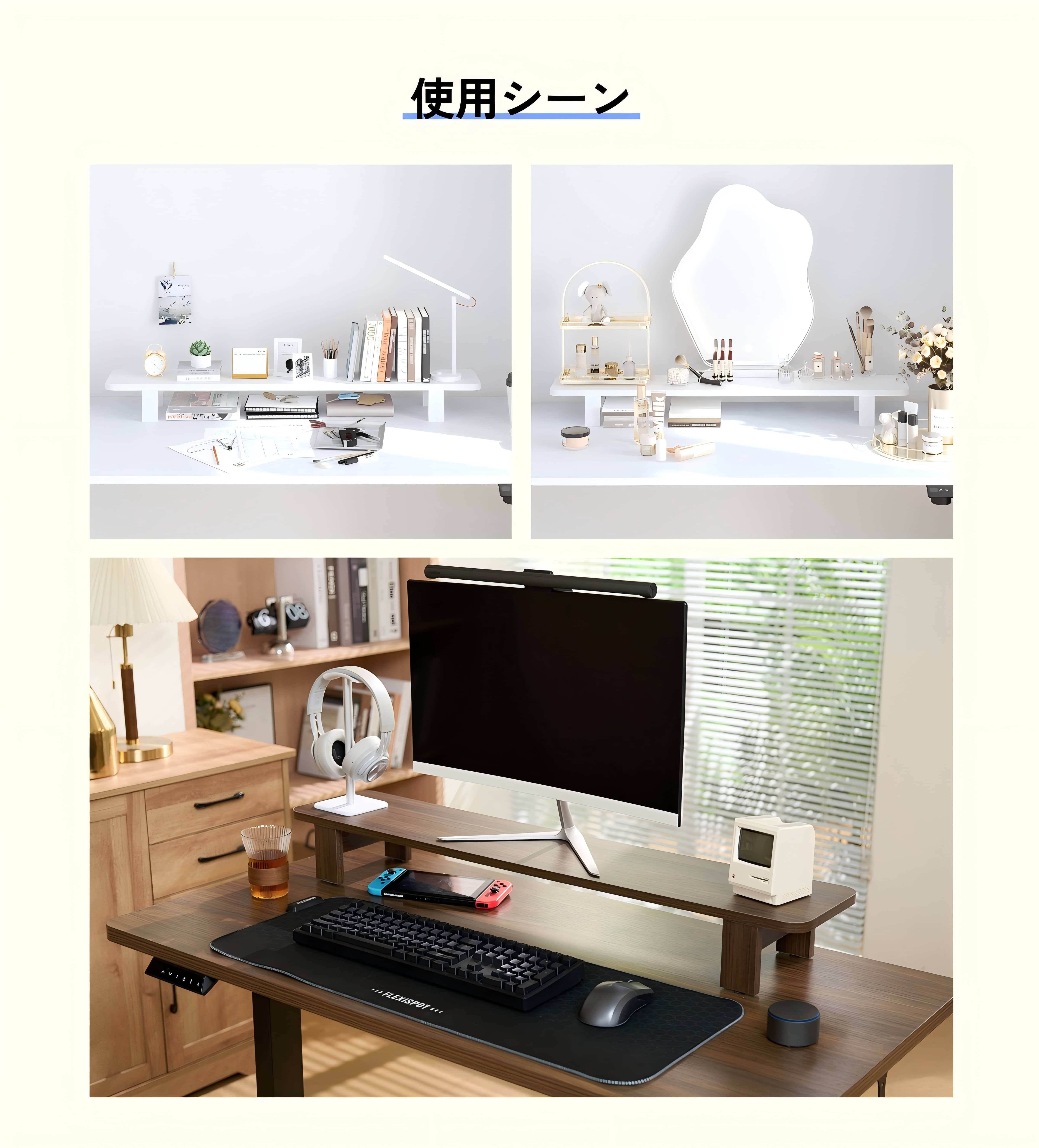 ・モニター台、ノートパソコン台としても使用可能。flexispot昇降デスクに付けることをおすすめします。
