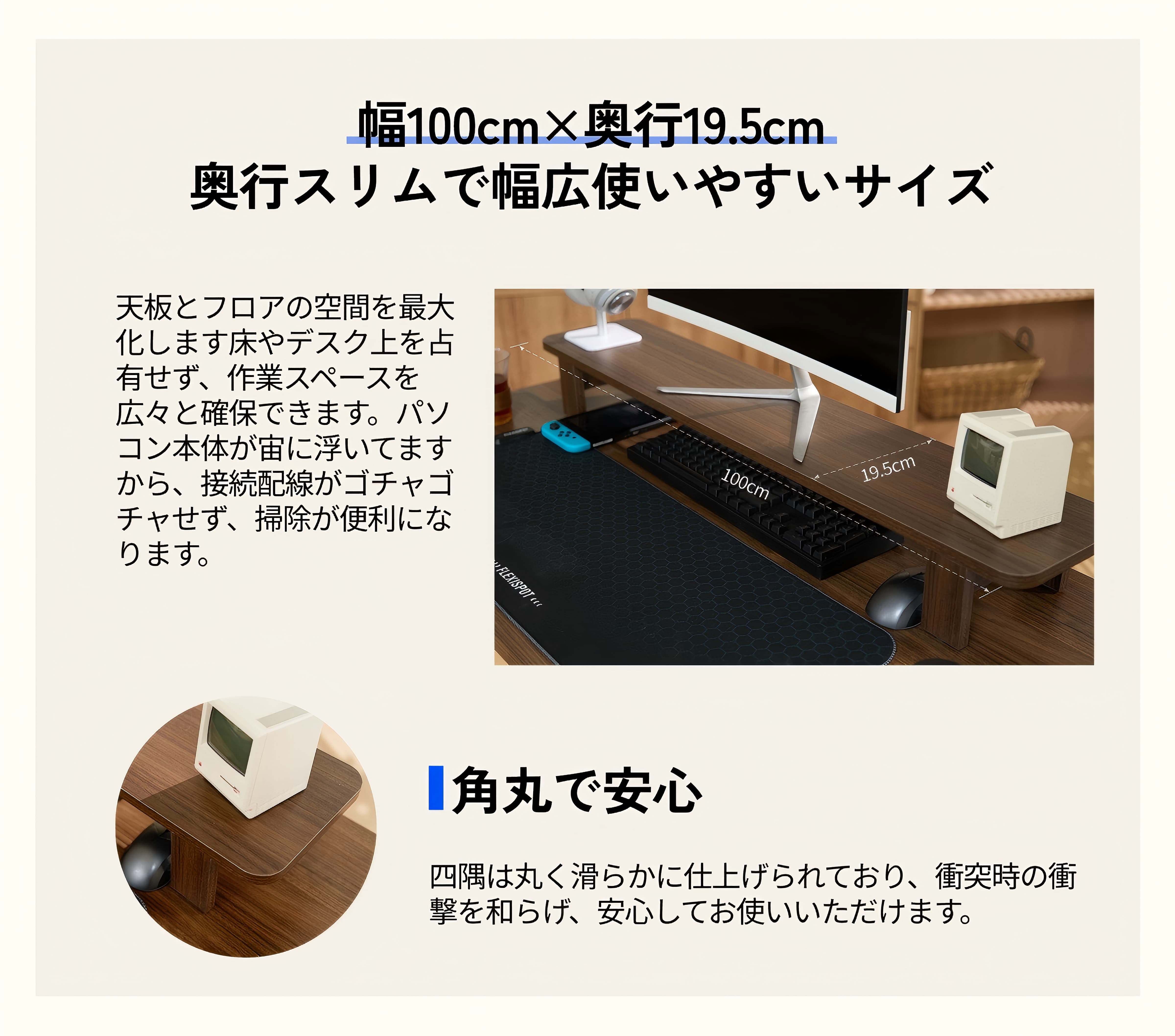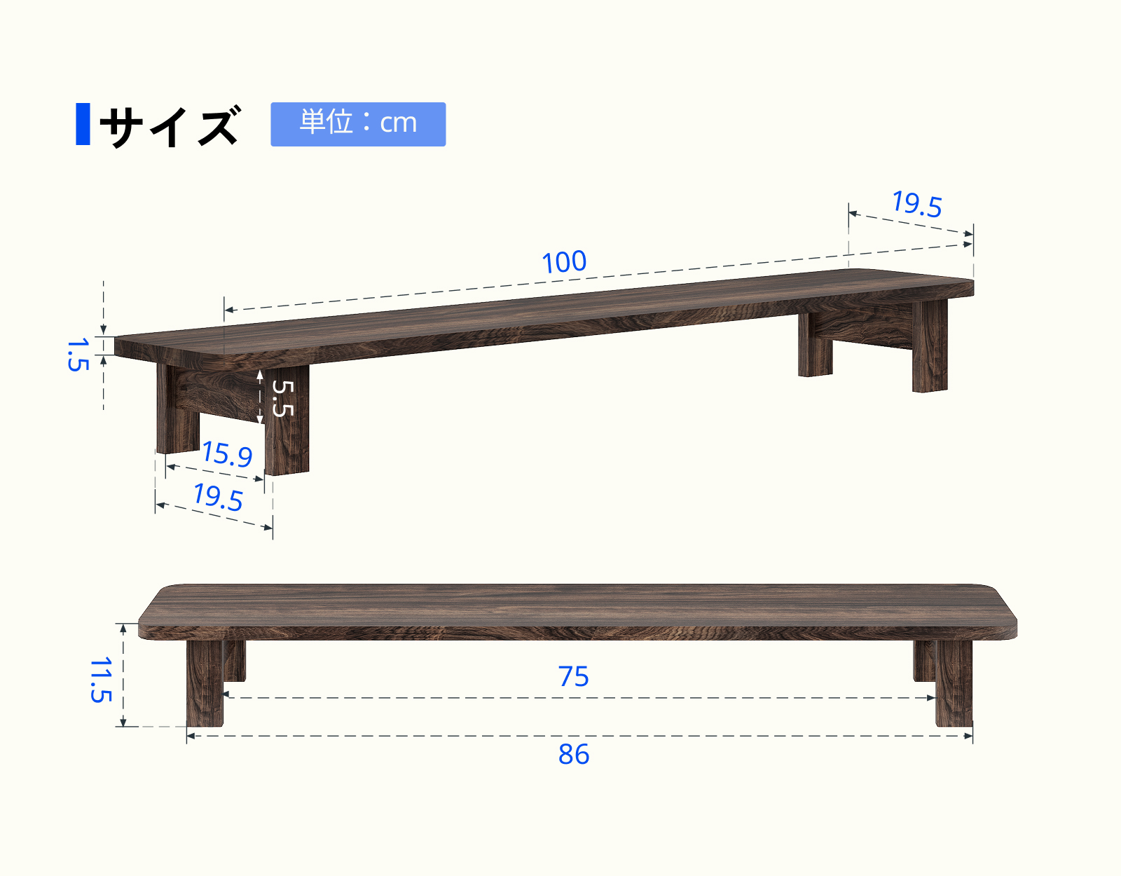 ・天板サイズ:100*19.5*1.5cm;耐荷重:50kg