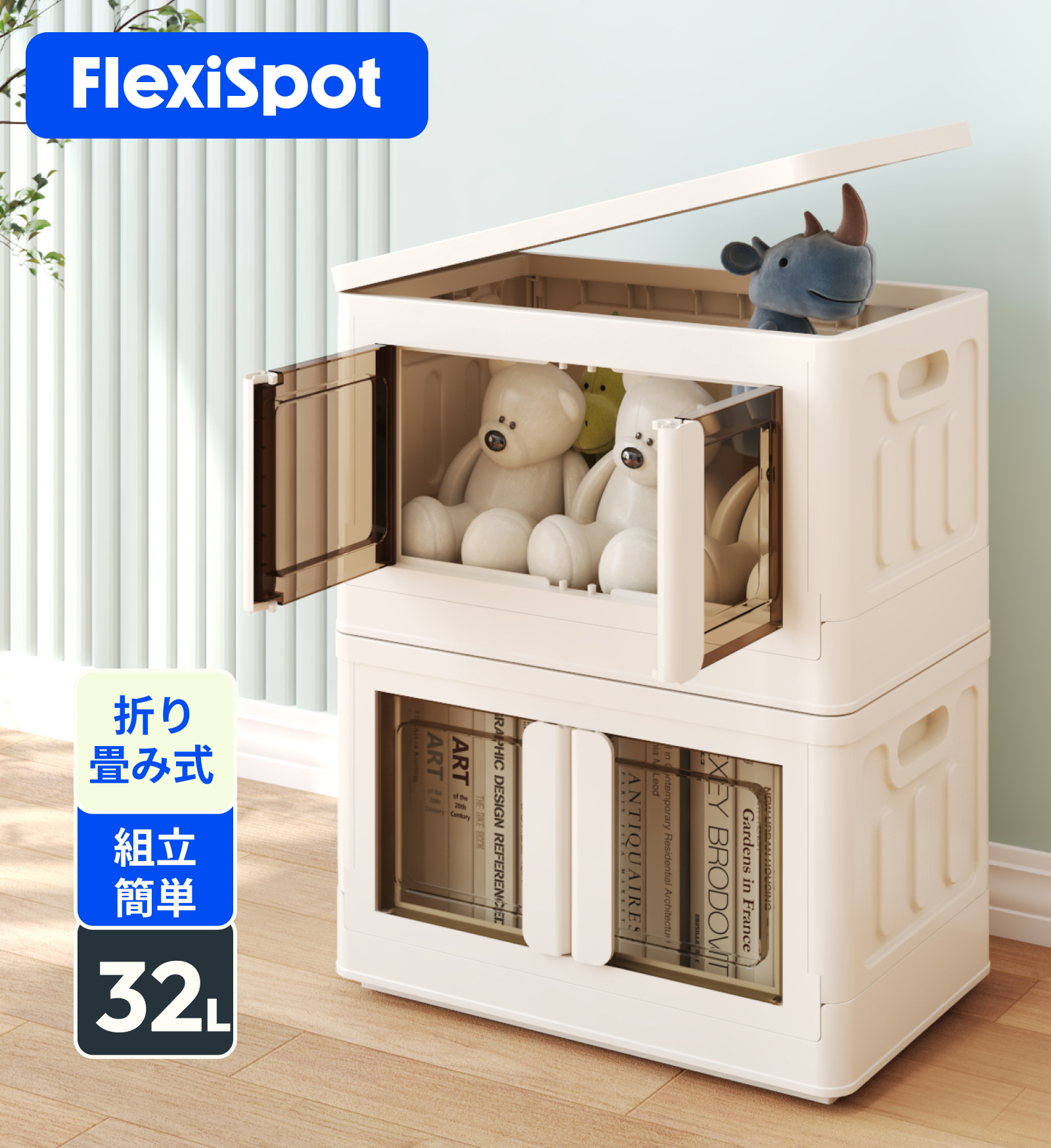 収納ボックス 収納ケース 折りたたみ FlexiSpot ST 衣装ケース コンテナボックス 収納 フタ付き 折りたたみ収納ボック 押し入れ おもちゃ 洋服 屋外 収納 32L