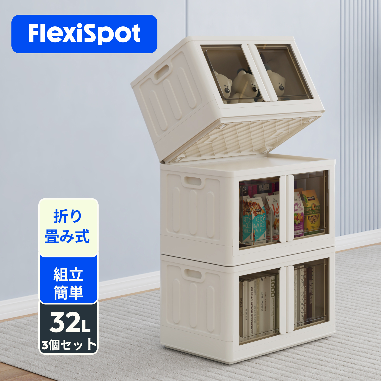 収納ボックス 収納ケース 折りたたみ FlexiSpot ST 衣装ケース コンテナボックス フタ付き 折りたたみ収納ボック 押し入れ おもちゃ 洋服 収納 32L 3個セット