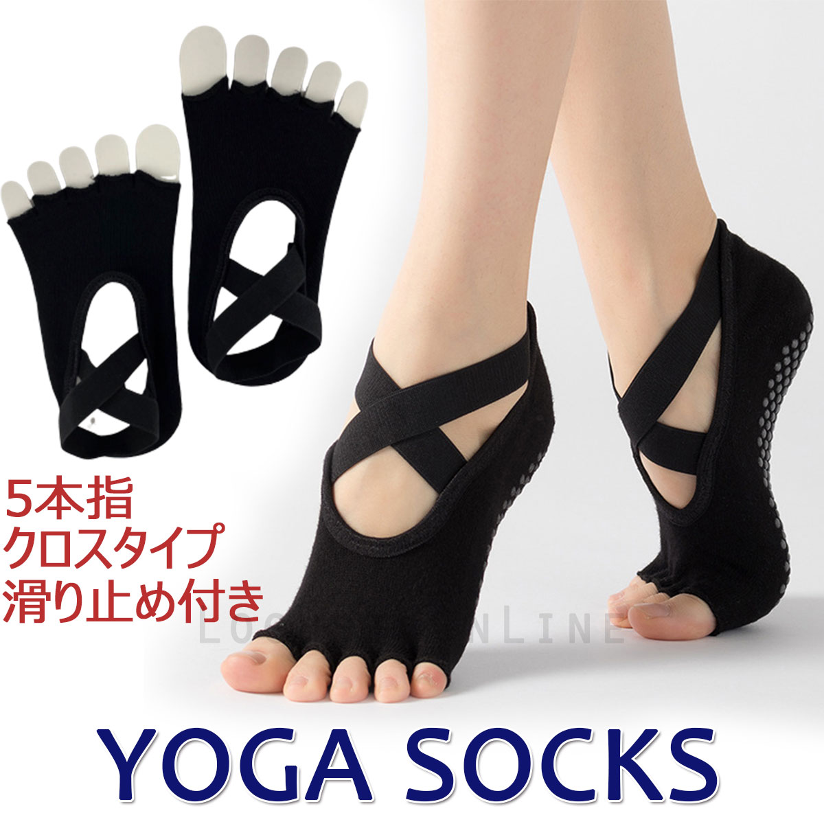 ヨガソックス 靴下 レディース 滑り止め付き フィットネス ヨガ スポーツ 5本指 つま先なし クロス C ポイント消化