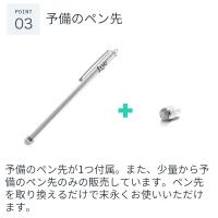 予備のペン先が付属しています。ペン先端の金属部分を回すことで簡単に交換可能。シンプルなデザインはいつまでも理想的で、タブレットを始めた父や母へのプレゼントにも最適です。